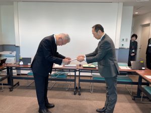 八乙女局長より出上理事長に回答書を手渡しいただき、内容につきましては小園副局長より