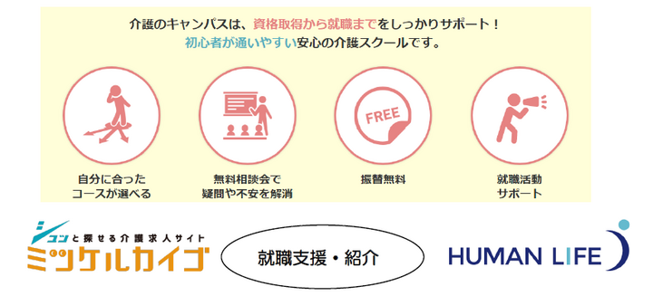 約3週間で資格取得できるコースも設置「介護のキャンパス」